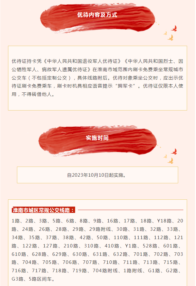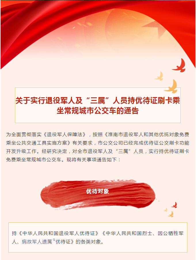 【交通运输领域】关于实行退役军人及“三属”人员持优待证刷卡乘坐常规城市公交车的通告
