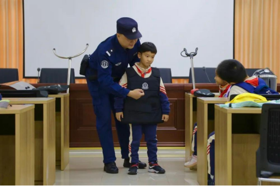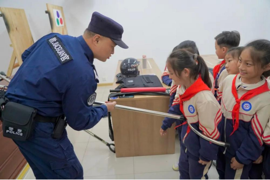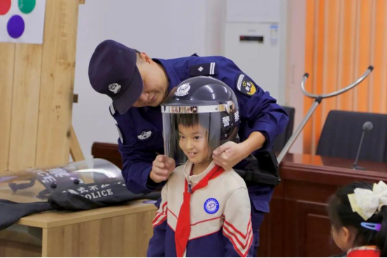 活动当天,孩子们怀着好奇和期待的心情来到警营。民警首先带领师生们参观了办案区,向他们介绍了办案的流程和操作,通过生动的案例讲解,让孩子们初步了解了侦办案件的过程。接着,在多媒体教室内,教官向学生们展示了警棍、盾牌、手铐、防暴头盔等警用装备,并详细介绍了它们的功能和用途。孩子们兴致勃勃的触摸和体验了部分装备,与警用装备“零距离”接触。