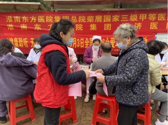 为大力宣传听力保健科学知识,增强人民爱耳护耳意识,同时宣传惠残助残政策,在爱耳日来临之际,淮南市各级残联系统利用多种方式开展“全国爱耳日”宣传活动,通过粘贴宣传标语、发放爱耳护耳常识传单和宣传袋、开展爱耳护耳讲座、免费听力检查等多种形式向广大居民宣传噪声对听力健康的损害,提高居民对爱耳护耳必要性和重要性的认识,推动广大群众养成健康用耳习惯,自觉减少噪声影响,保护听力健康,让广大群众学习在日常生活中保护自己的耳朵,避免意外伤害,同时又使大家掌握爱耳、护耳的常识,有效减少听力残疾的发生。
