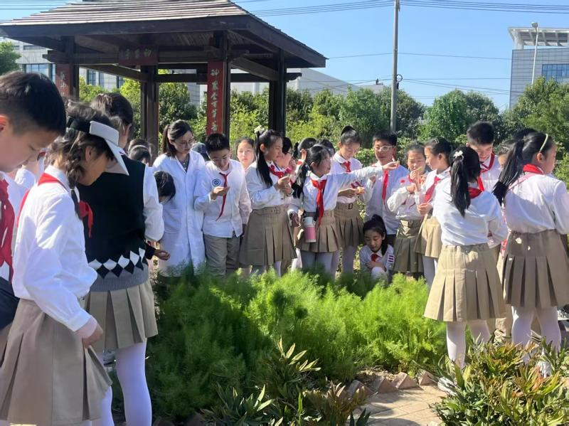 在实验室现场,孩子们化身“小小质检员”,亲手操作农药残留快速检测卡分析果蔬样本,用移液枪模拟专业检测流程;通过微生物培养实验观察致病菌形态;用显微镜探索洋葱鳞片叶表皮细胞的微观结构;当维生素C与高锰酸钾发生颜色鲜明的氧化还原反应时,实验室里惊叹声不断……活动还延伸至户外的药用植物园,学生们在薄荷、金银花等中草药种植区观察植株特征,记录生长习性,了解中药材功效,将课本知识与自然实践紧密结合。