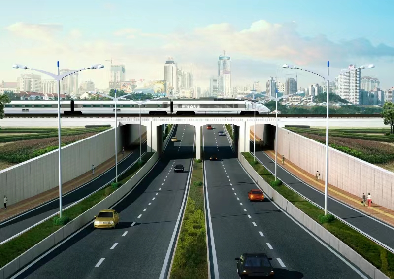 学院路下穿阜淮铁路项目位于田家庵区,北起舜耕路,南接洞山路,建设规模及主要建设内容包括:道路全长约 298m,新建立交桥主体工程;线路渡线及道岔迁移改造、铁路通信、信号、电力、电气化迁移过渡防护;引道(学院路)道路工程;排水交通、绿化、照明等配套附属工程。项目建成后,可加强阜淮铁路南北市政道路联系,完善区域路网结构,有效分流高峰期淮河大道过铁车辆,改善交通环境。