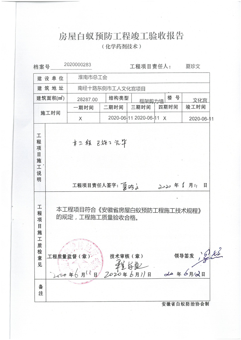 工人文化宫项目白蚁预防工程竣工验收报告(单项验收)
