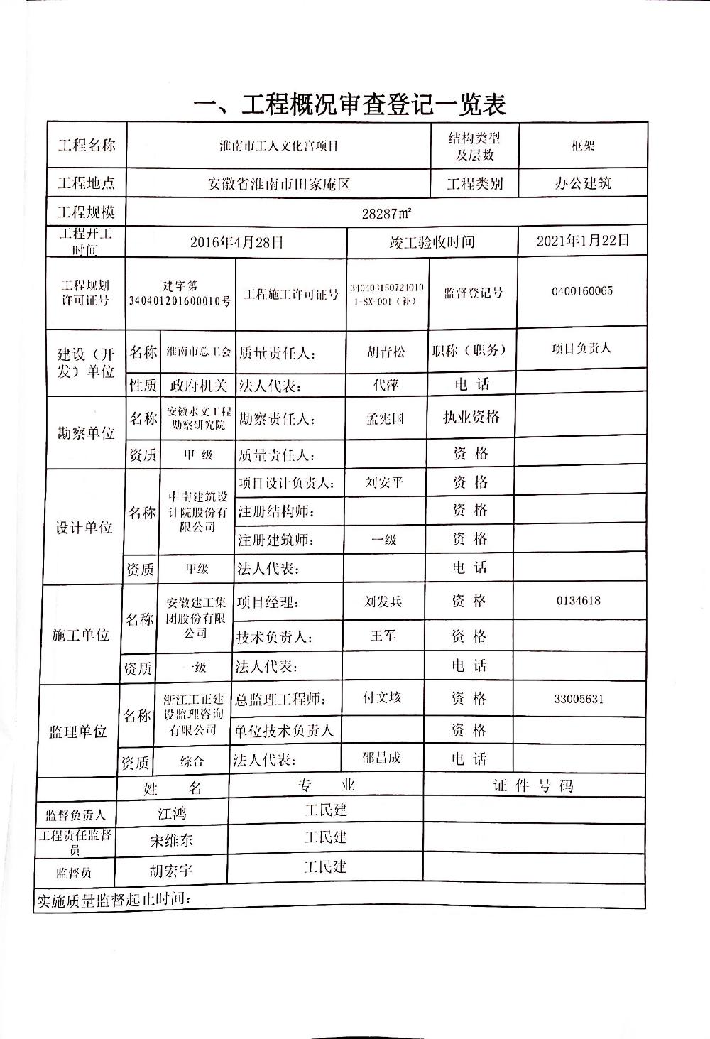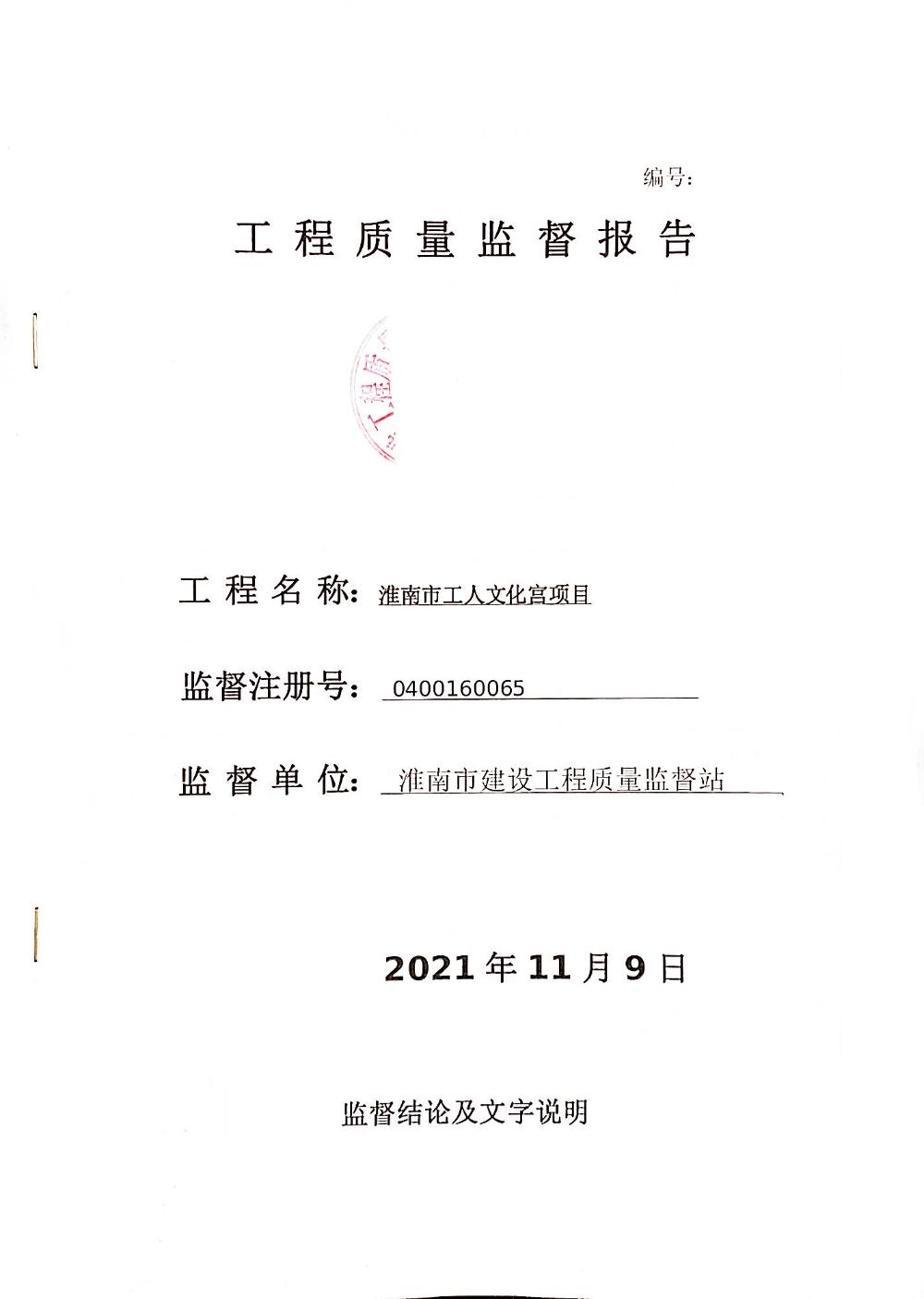 淮南市建设工程质量监督站关于市工人文化宫项目工程质量监督报告