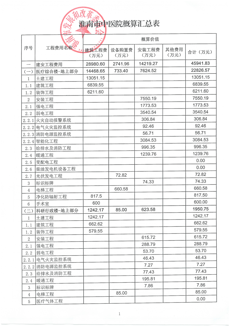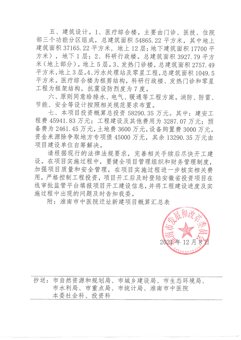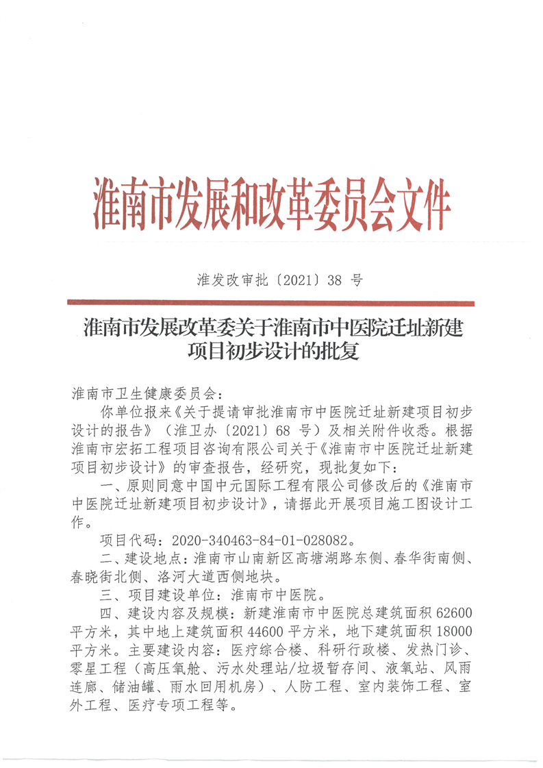 【初步设计审批】淮南市发展改革委关于淮南市中医院迁址新建项目初步设计的批复