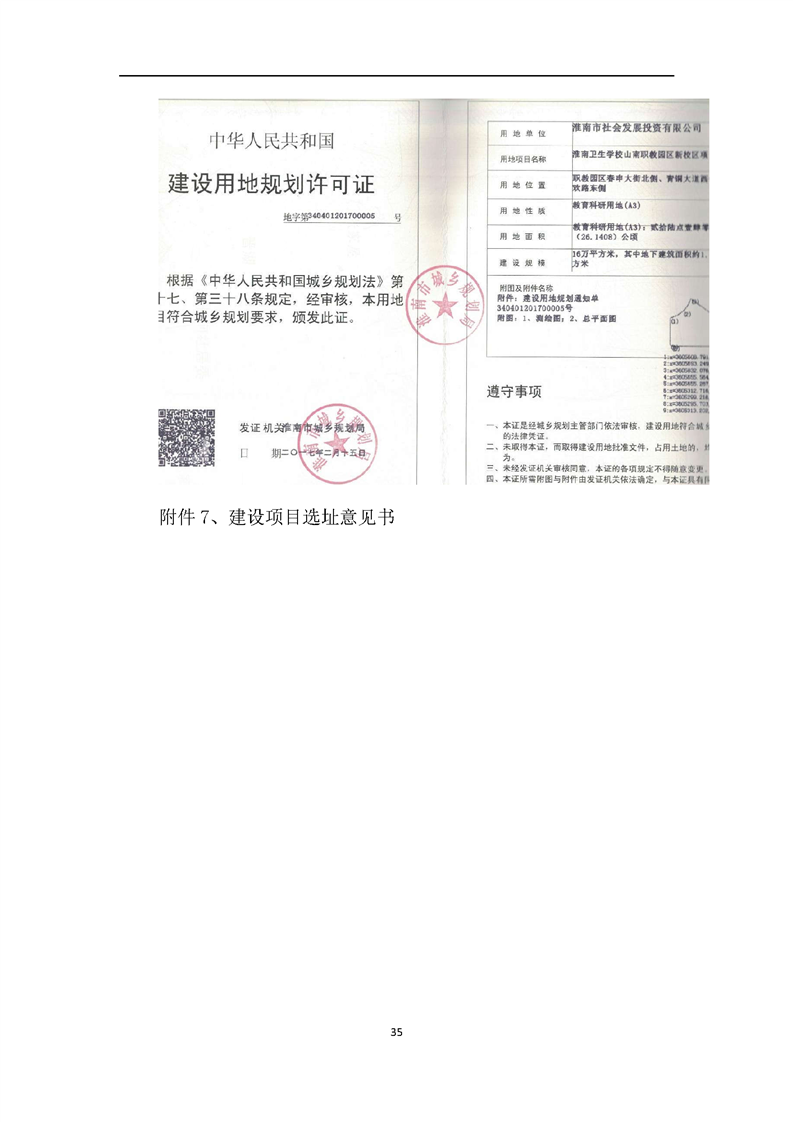 【建设用地规划许可证】淮南卫生学校山南新校区建设用地规划许可证