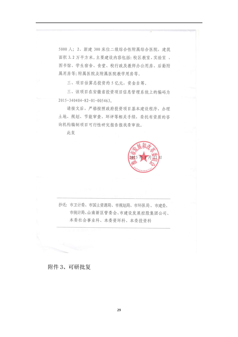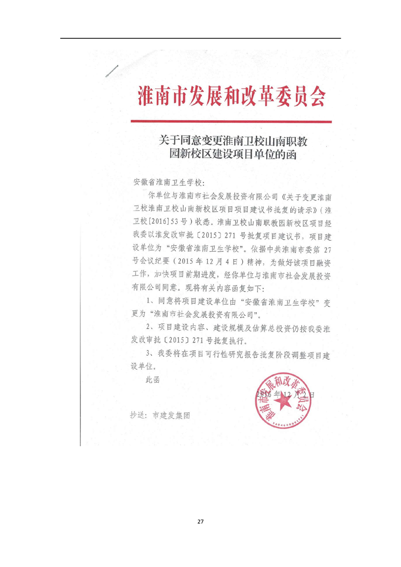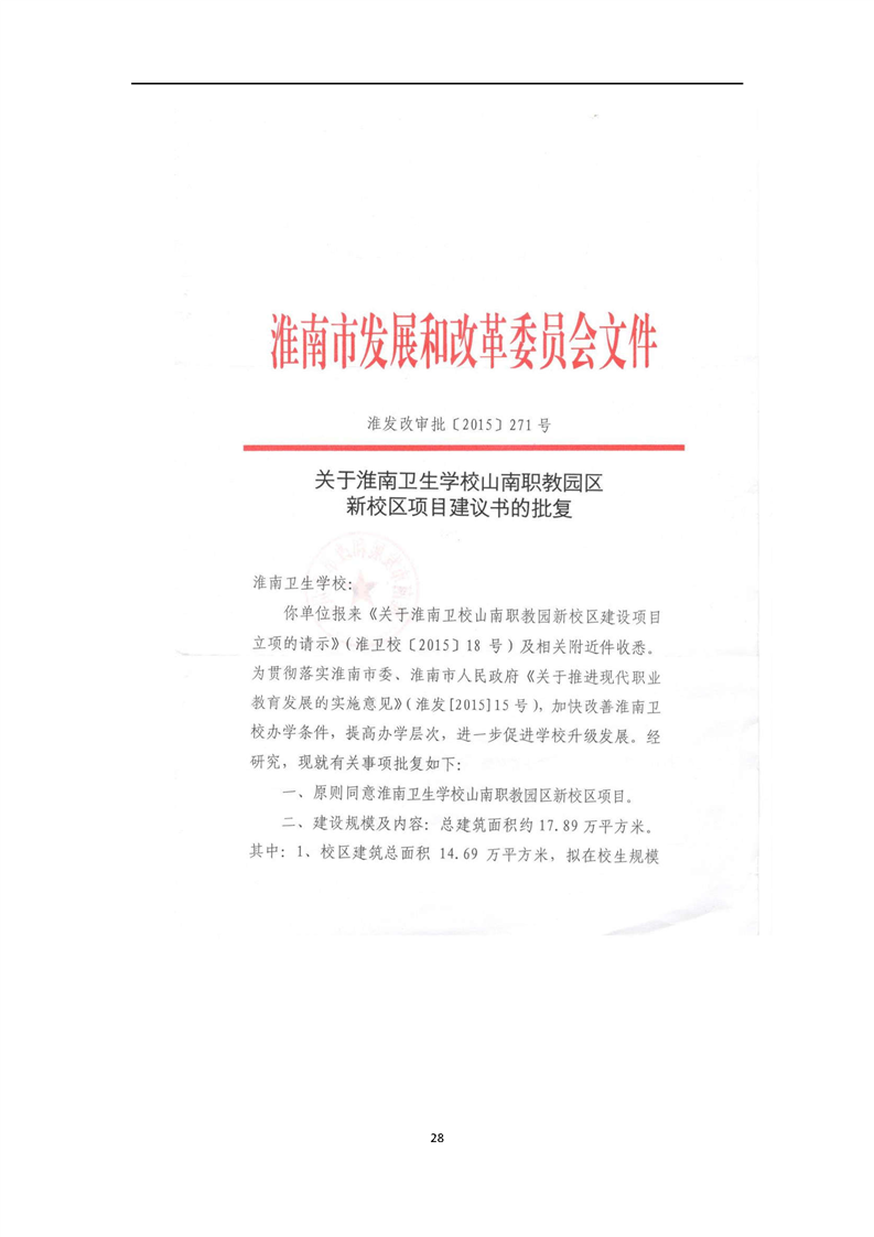 【建议书审批】关于淮南卫生学校山南职教园区新校区项目建议书的批复