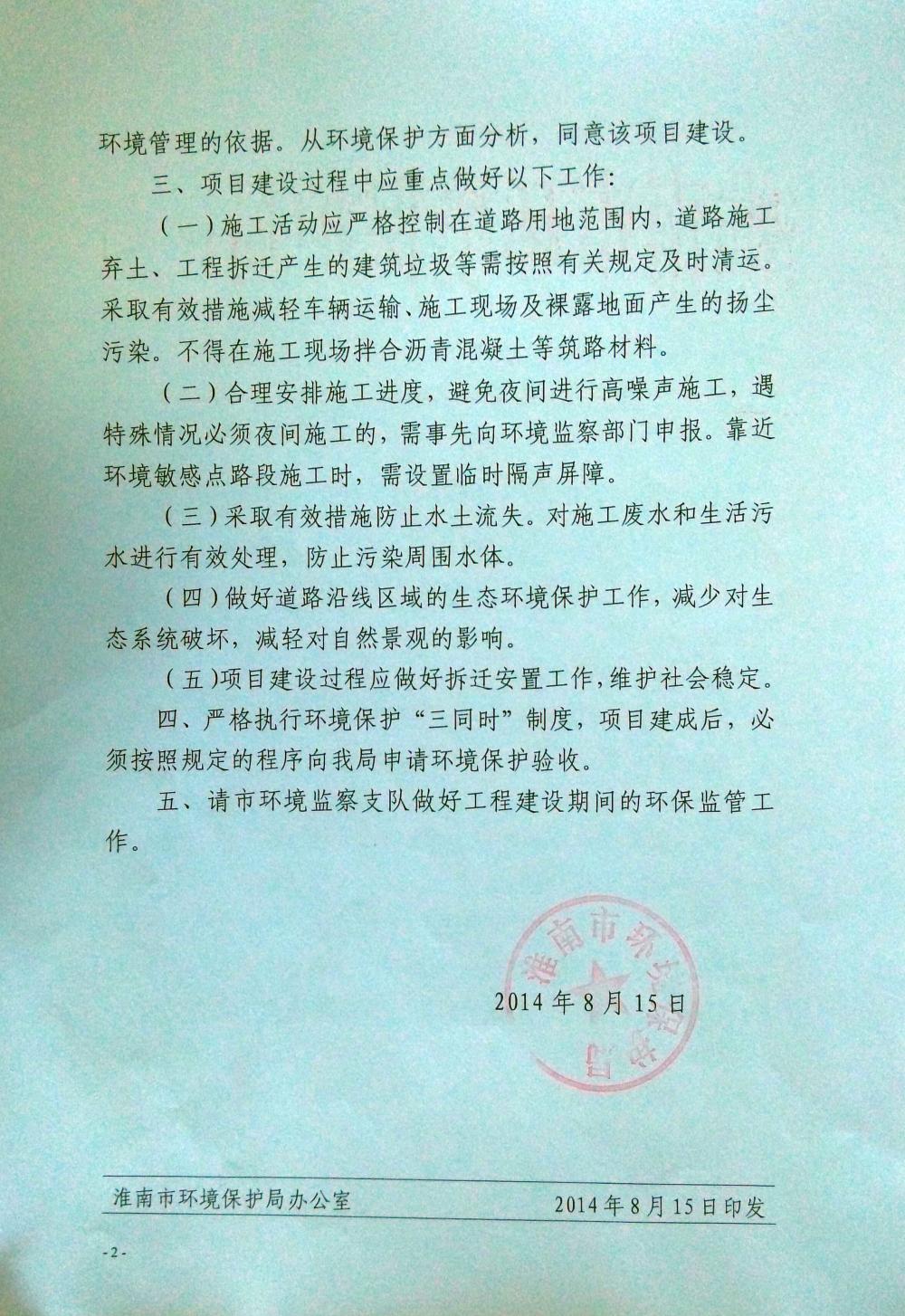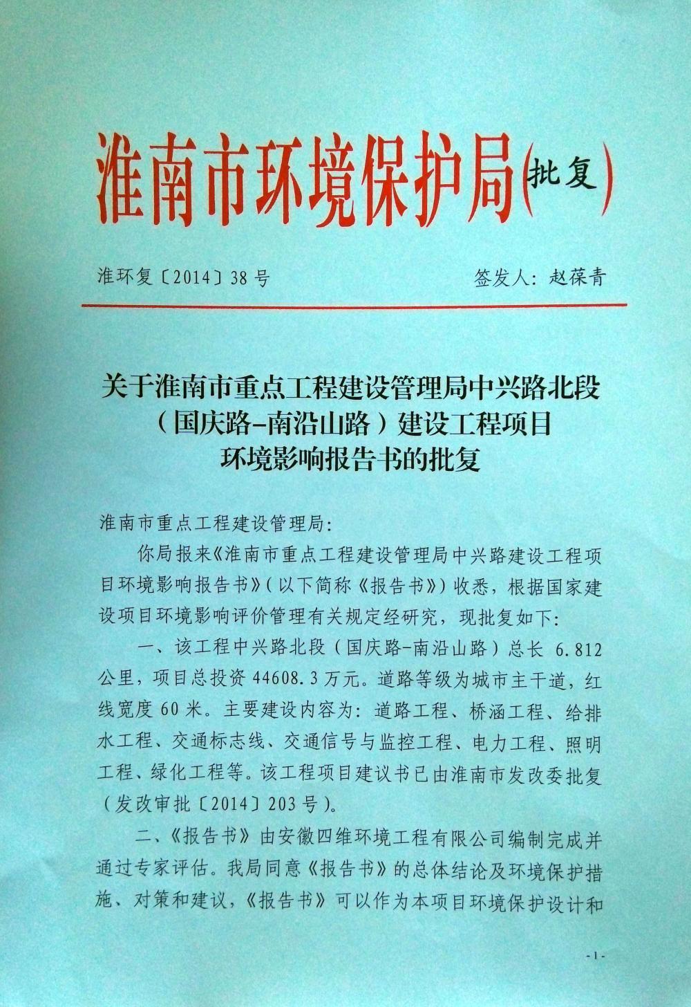 【环境影响评价审批】关于淮南市重点工程建设管理局中兴路北段(国庆路-南沿山路)建设工程项目环境影响报告书的批复