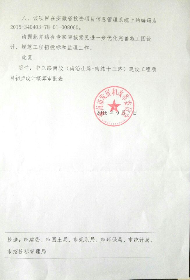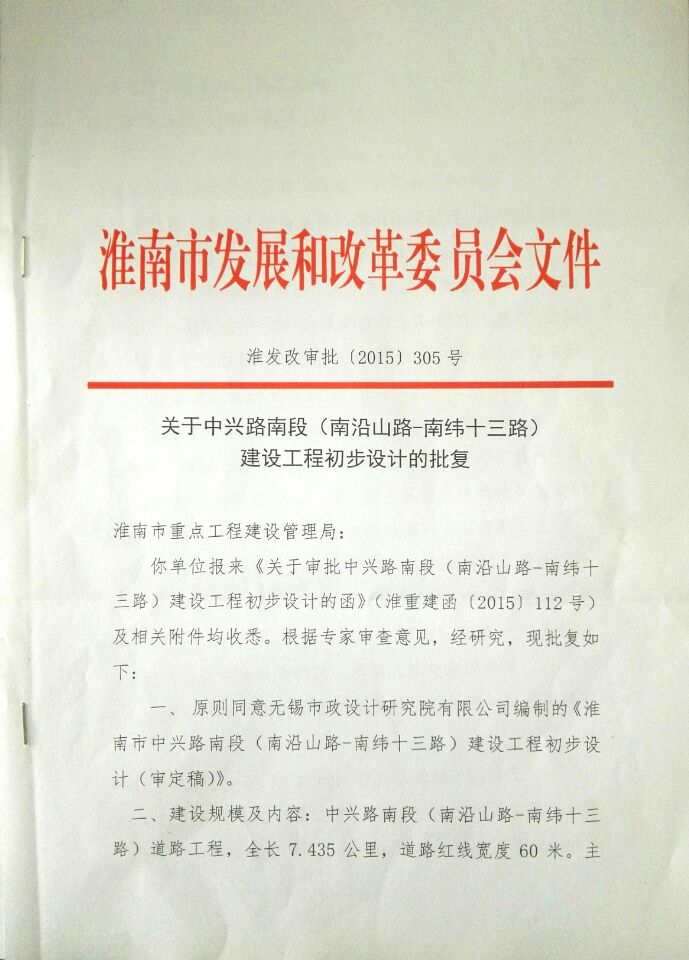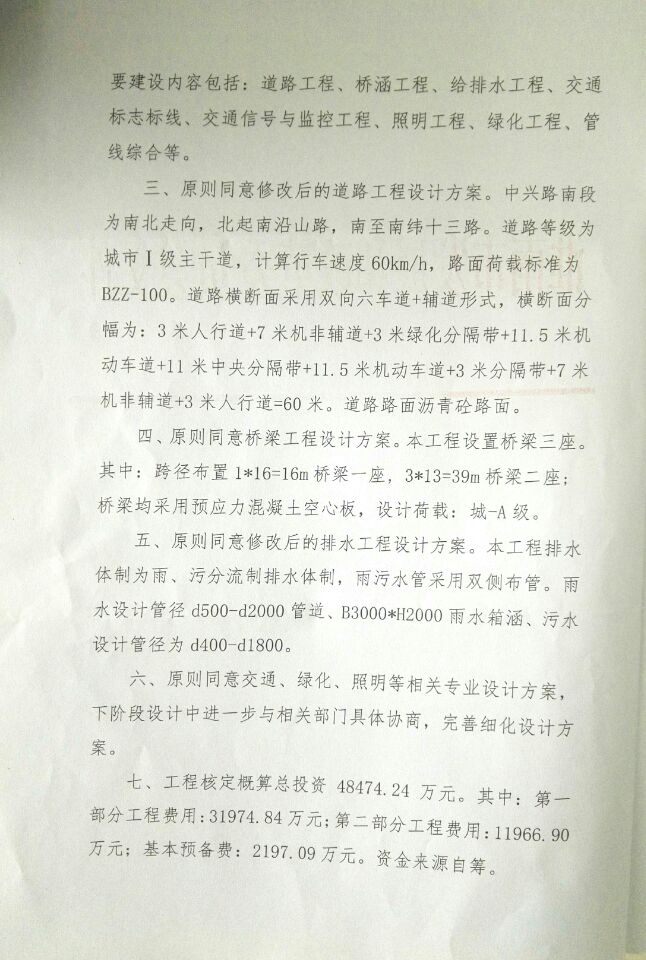 【初步设计审批】关于中兴路南段(南沿山路-南纬十三路)建设工程初步设计的批复