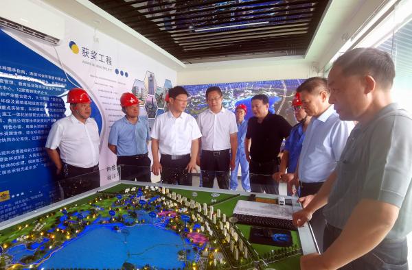 西部采煤沉陷区综合治理项目正在进行景观工程、廊桥工程、路面停车场等室外作业施工,张劲松指出当前天气炎热,要切实提高高温期间安全生产意识,做好防暑降温工作,加强对一线作业人员关心关爱,合理安排作息时间和工作强度。