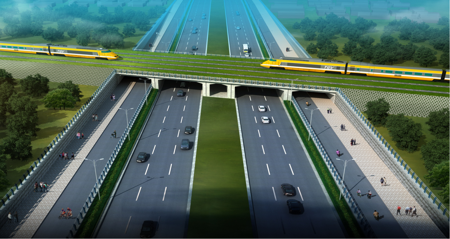 中兴路下穿淮南铁路线立交桥项目为中兴路下穿铁路段,位于经开区洞山路和朝阳路之间,全长约580米,道路红线宽60米,项目总投资约3.2亿元。建设内容包括立交桥工程、道路工程、轨道工程、通信工程、信号工程、电力工程、电气化工程、排水工程、房建工程、照明工程、交通工程、绿化工程。设计单位:中铁上海设计院集团有限公司。