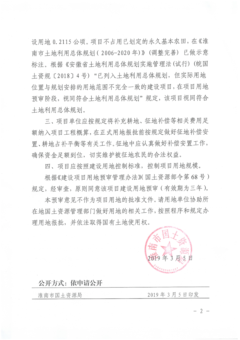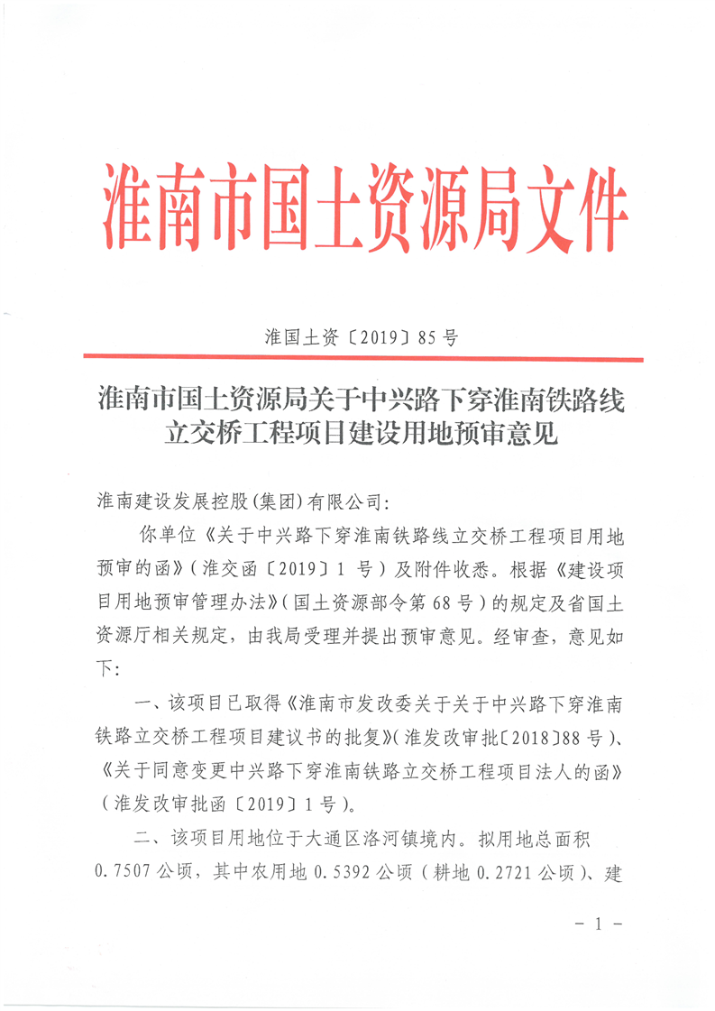 中兴路下穿淮南线立交桥工程项目建设用地预审意见(用地预审)